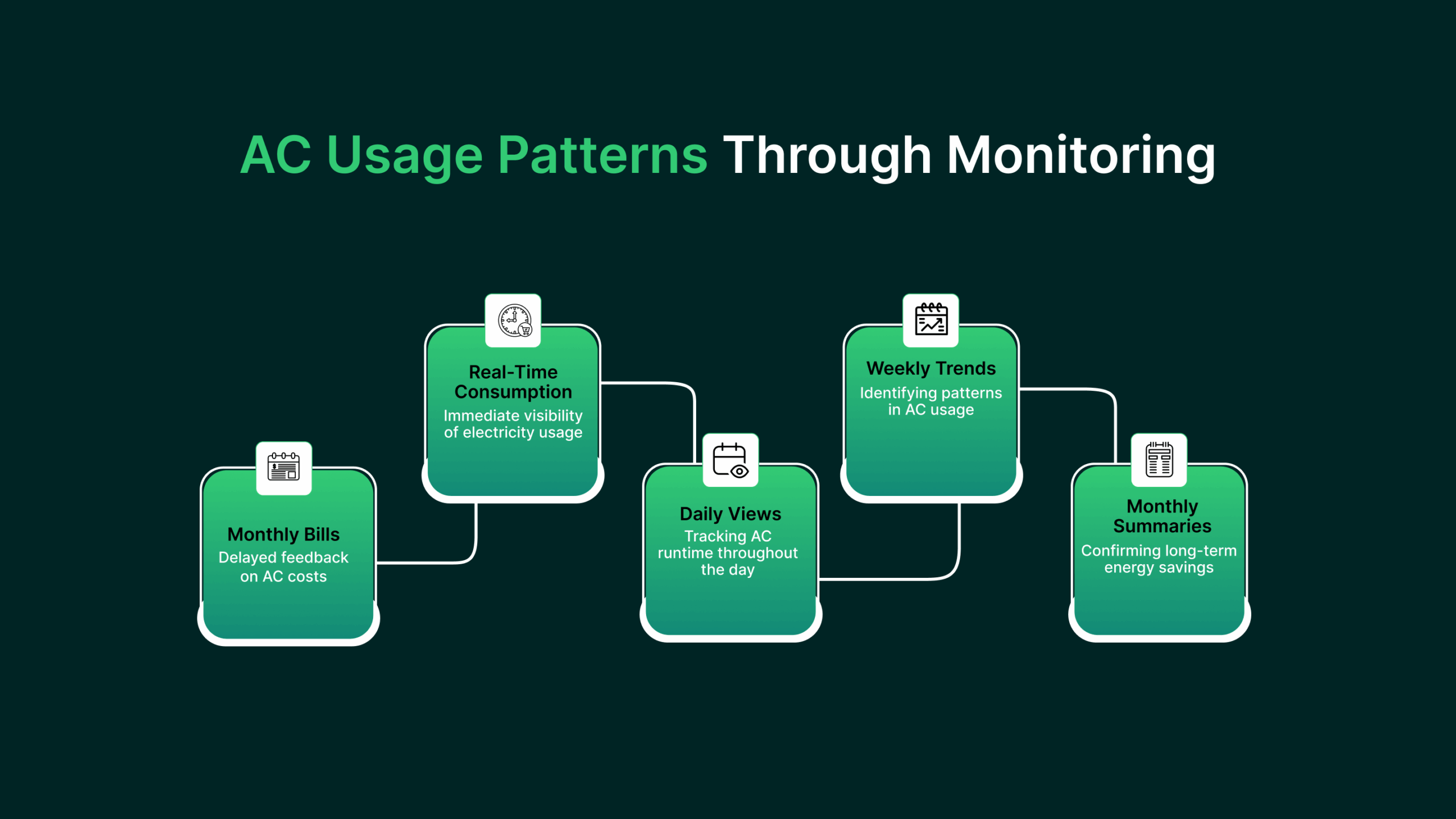 - Weekly trends help identify rising usage caused by weather changes, longer cooling hours, or increased occupancy.