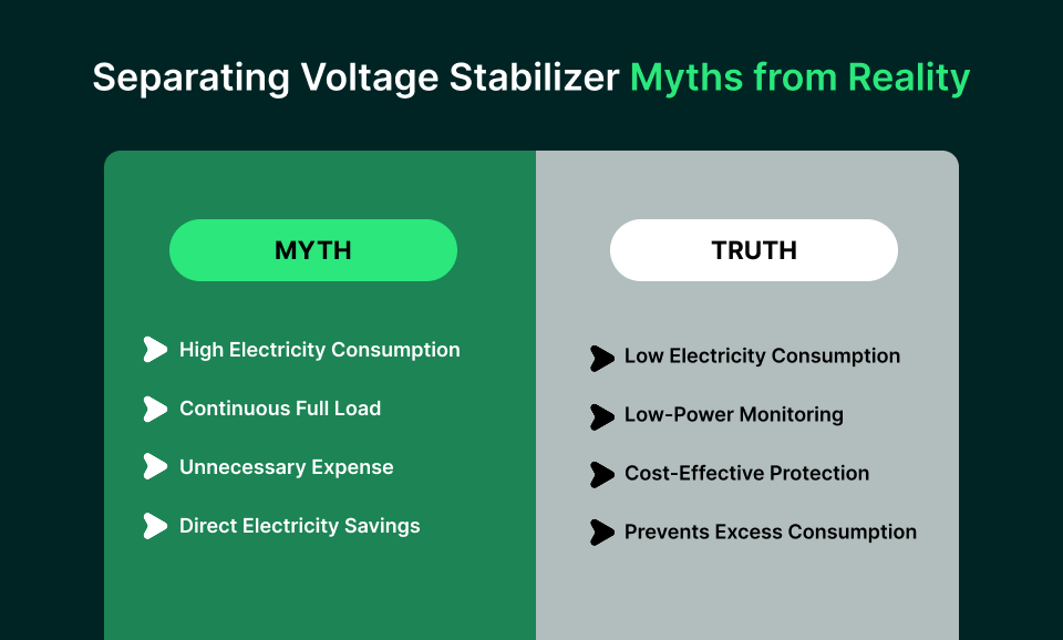 Truth: Stabilizers use only a small fraction of the power that the appliances draw, making their impact on bills minimal.