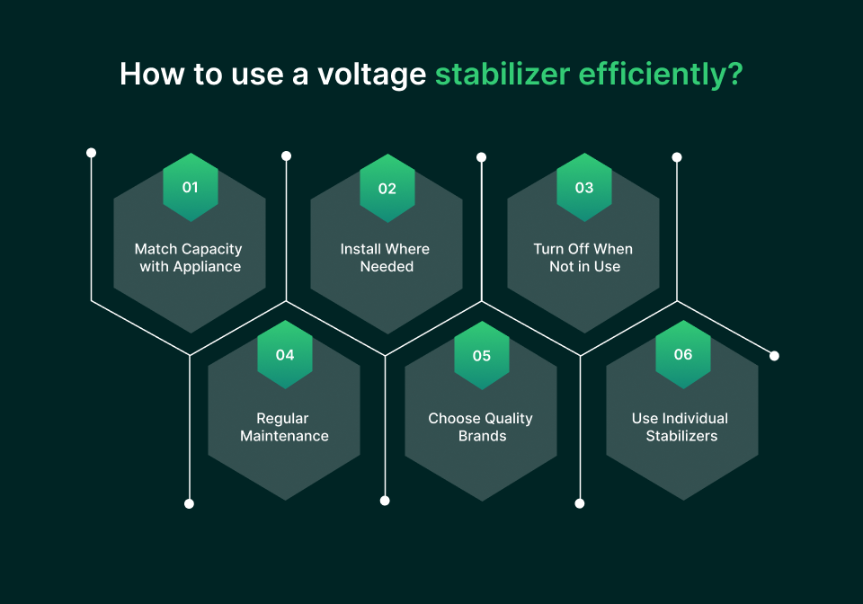 Following these steps ensures that your stabilizer protects your appliances effectively while keeping electricity consumption minimal, helping you save on bills without compromising safety or performance.