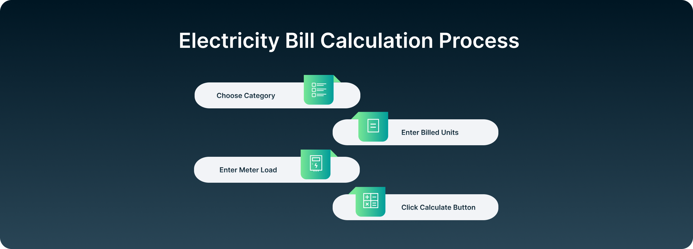 Generating your electricity bill in advance has never been easier. With our smart DGVCL bill calculator, you can easily get an estimate of your electricity bill. All you have to do is input a few details, and you are good to go. This easy-to-use tool makes your electricity bill calculation effortless, providing you with a real-time estimate based on your electricity usage. Dakshin Gujarat Vij Company Ltd (DGVCL) serves millions across South Gujarat. It is not always convenient to calculate your bill manually with varying tariff slabs, fixed charges, and additional fees. That’s where the DGVCL electricity bill calculator comes in, doing all the complex calculations in the background, saving you time and providing you with clarity on your bill. DGVCL Bill Calculator.How DGVCL Bill Calculation Works?