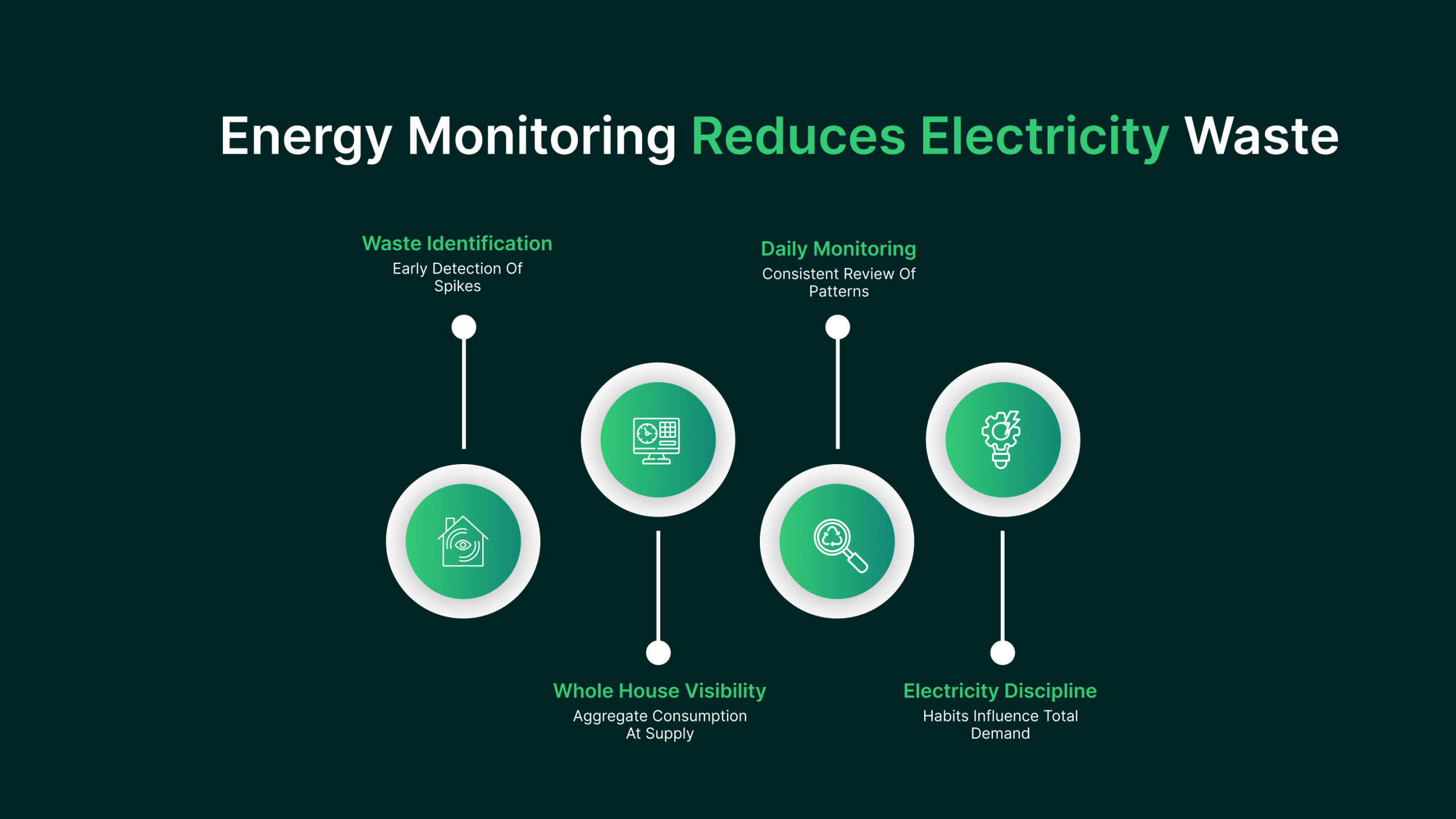 Electricity waste is often misunderstood because attention is focused on individual appliances. In reality, total demand is what matters. Whole-house energy monitoring captures aggregate consumption at the supply level, giving you a complete picture of electricity flow.