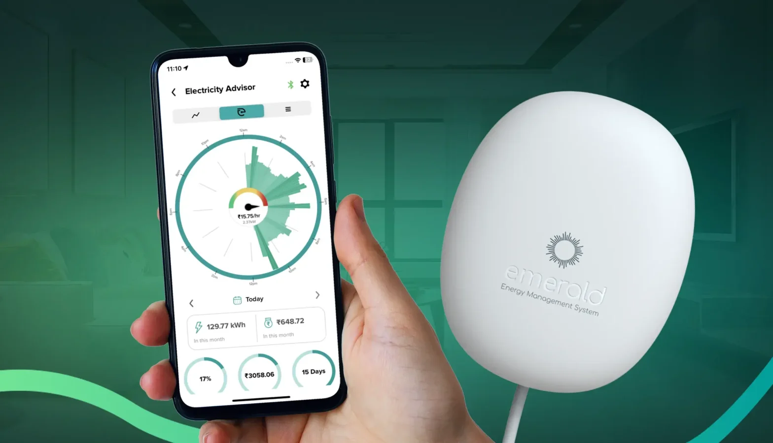 Enciser’s Emerald is a compact and advanced energy monitoring device that comes with a smart mobile app Enciser.